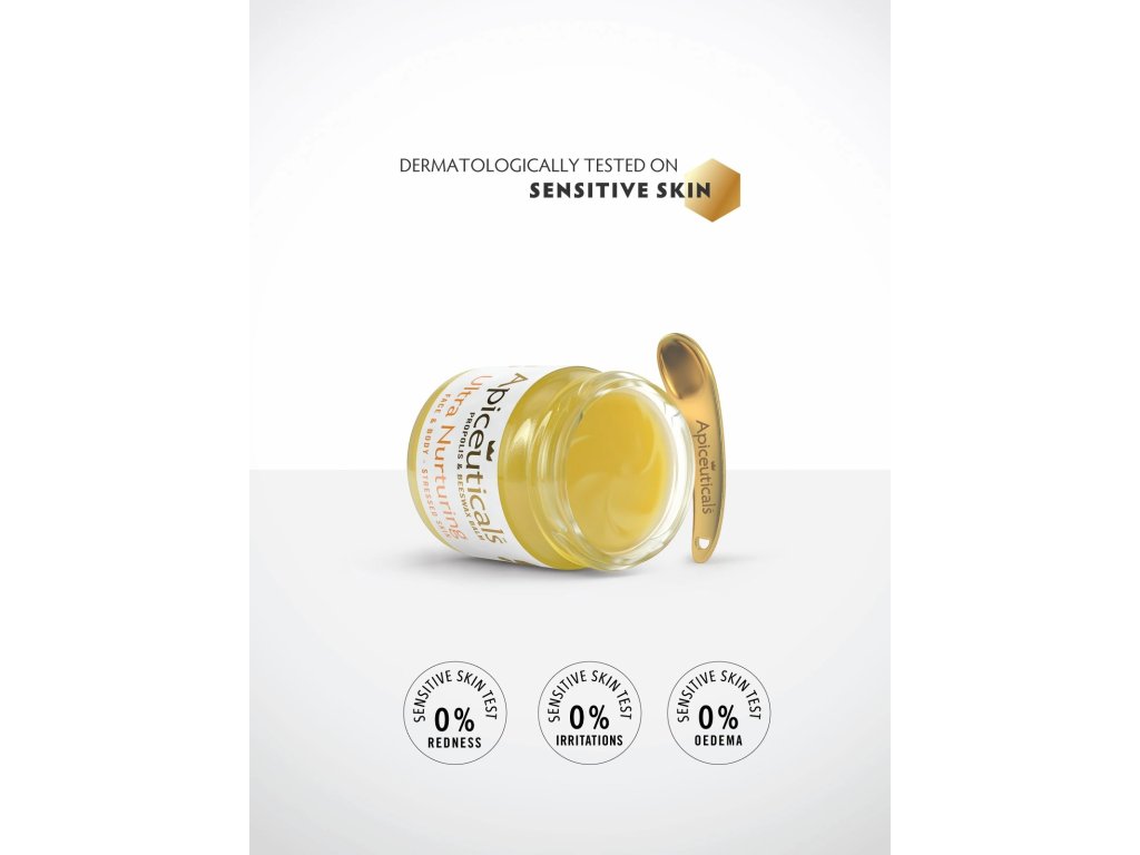 Nezbytnost ve vaší lékárničce! Silný balzám s vysokou koncentrací organického propolisového oleje a měsíčku lékařského s prokázanými protizánětlivými, antibakteriálními a protiplísňovými vlastnostmi pro celé tělo, obličej, rty, nohy a ruce. Ultra výživný medový balzám chrání a zklidňuje suchou, stresovanou a podrážděnou pokožku a zároveň podporuje rychlý a zdravý proces hojení. Je speciálně navržen pro pokožku, která potřebuje extra péči, aby vypadala svěže a zářivě. Přestože je skvělý pro všechny typy pleti, ty speciálně si vydechnou, když pocítí jeho extra uklidňující vlastnosti.