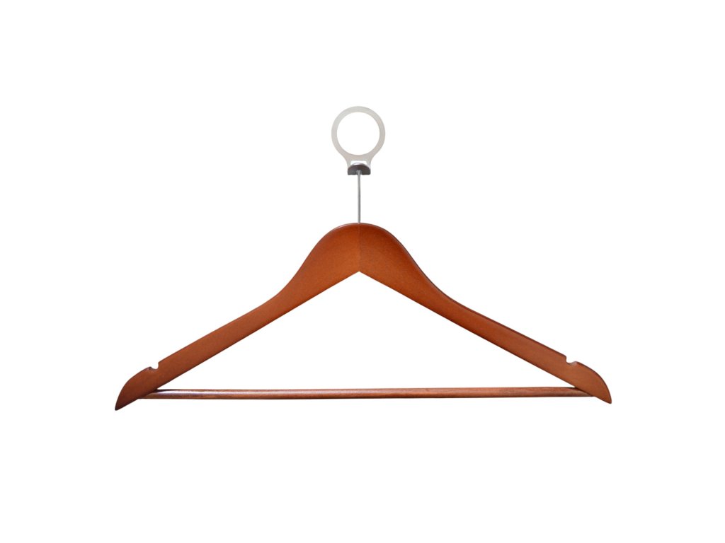 Dřevěný věšák s kroužkem proti krádeži s ramenem pro zavěšení kalhot