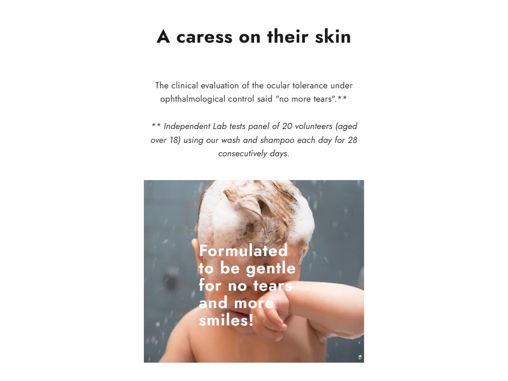 **Nezávislý laboratorní testovací panel s 20 miminky se zdravou pokožkou za podmínek běžného používání ve věku od 1 měsíce do 5 let po dobu 30 dnů.