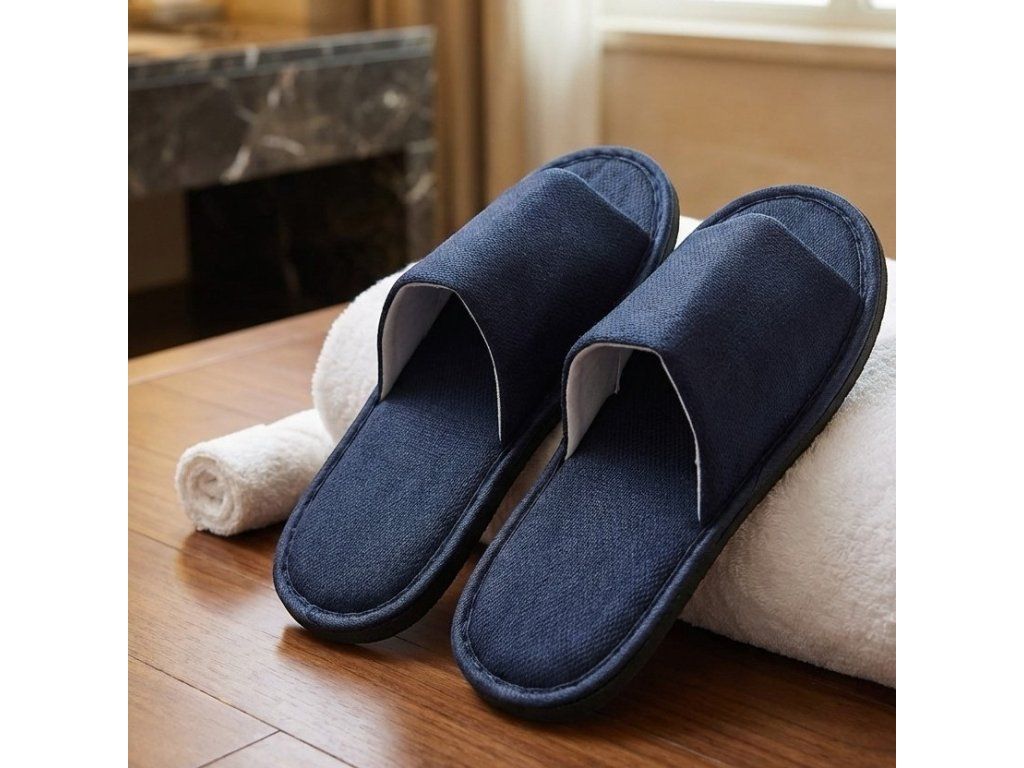 Hotelové pantofle HS13 NAVY (tmavě modrá, námořnická) s černou velmi tlustou a pevnou 7mm EVA podrážkou.