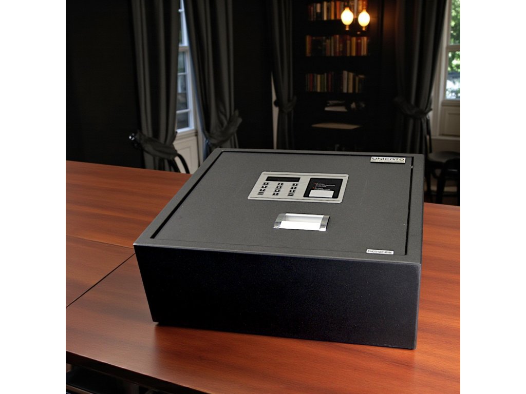 NAOS model 5001 – nejjednodušší volba pro hotely, kanceláře a domácnosti. Motorizovaný digitální trezor nabízí moderní, kompaktní a dodatečnou ochranu pro hotelové, rezidentské i firemní využití. Otevírání nahoře je vhodné pro uložení trezoru do zásuvek nebo skříní. Dveře sejfu lze otevřít až do úhlu 90° pomocí hydraulického zvedání.