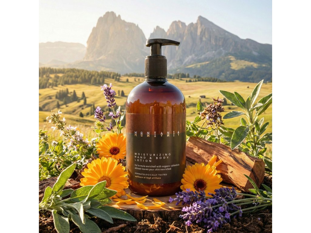 Hydratační tělový krém MONTANIA v 500 ml plnitelném dávkovači z italské díle ALLEGRINI, s organickým glycerinovým extraktem z měsíčku lékařského. Zanechává pokožku jemnou a sametovou, jako by ji pohladila ranní rosa. 500 ml plnitelný dávkovač z recyklovatelného a recyklovaného plastu. Dermatologicky testováno, bez silikonu a barviv.