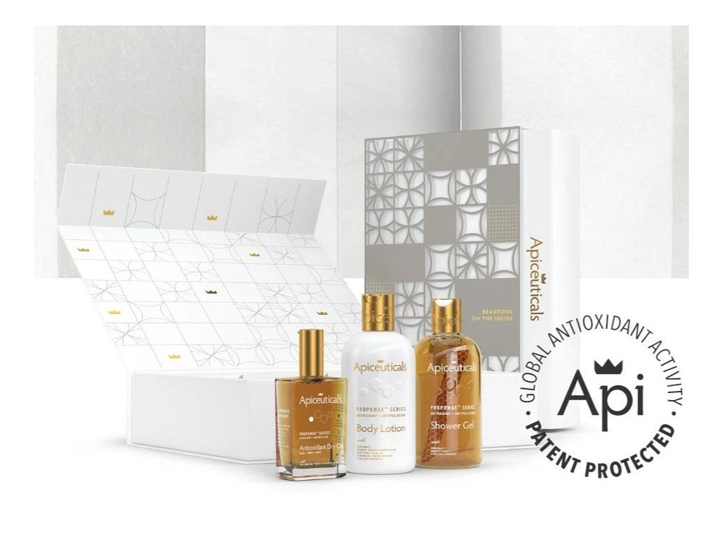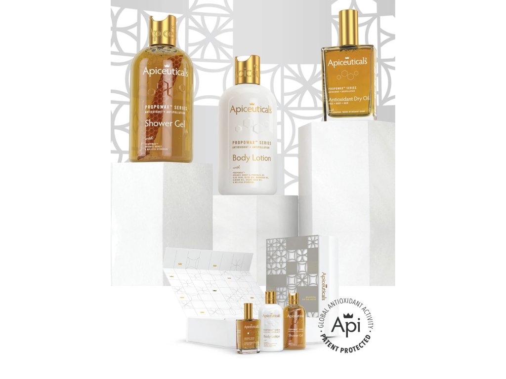 Tato prémiová dárková sada Body Care, poháněná novým PROPOWAX™ „Živým plástvem“, je ztělesněním luxusního darování. Obsahuje kompletní antioxidační rituál – sprchový gel, tělové mléko a suchý olej – elegantně prezentovány v udržitelné magnetické dárkové krabičce.Každá receptura je bohatá na antioxidanty, chrání před předčasným stárnutím a zároveň pokožku zahalí hydratací a vůní. Je navržena pro ty nejnáročnější vkusy a je tak dokonalým gestem pro blízké – nebo dokonalým potěšením pro vás samé. Spojení vědy, luxusu a nadčasové elegance v jedné nezapomenutelné sadě.