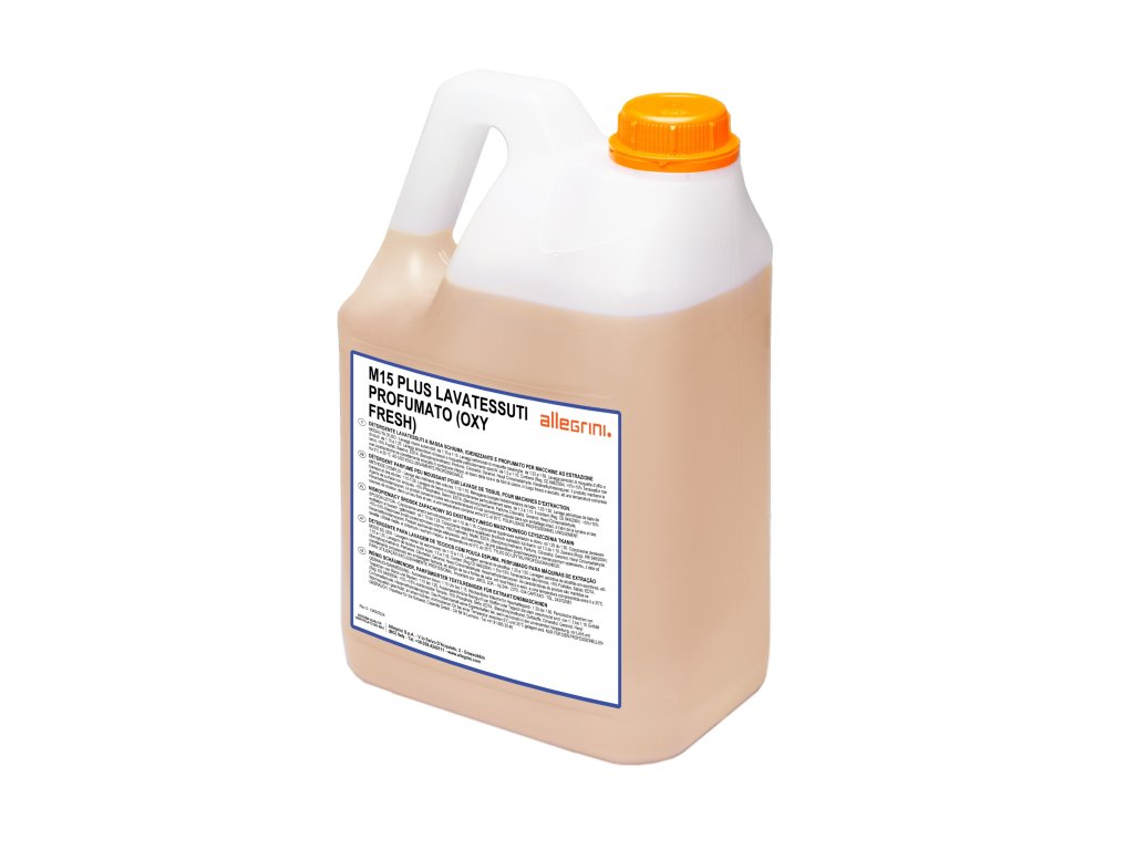 POUŽITÍ: M15 PLUS LAVATESSUTI PROFUMATO (OXY FRESH) je speciální nízko pěnivý koncentrát pro čištění koberců a různých druhů textilu. Má vynikající čistící a dezinfekční sílu a funguje i na nejhlubší zažranou špínu.