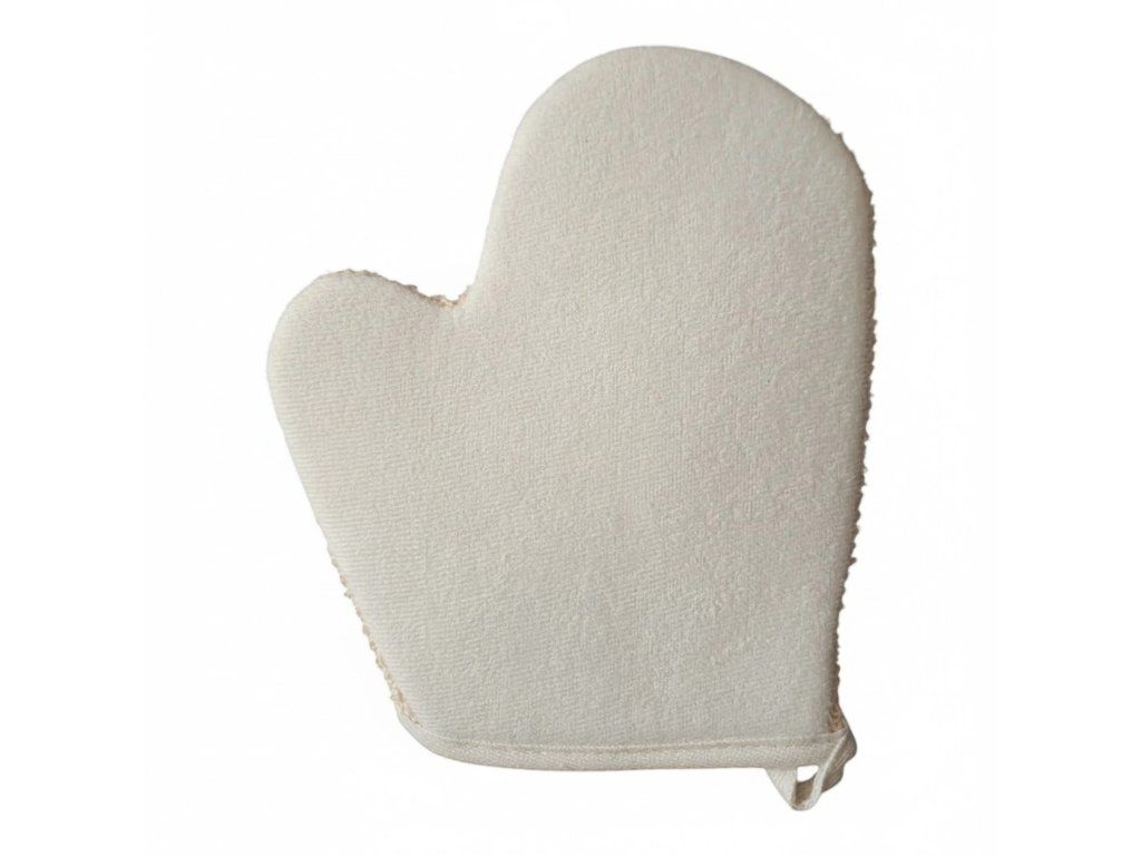 Masážní rukavice je ideální pro denní peeling pokožky. Čistí a odvádí nečistoty nahromaděné po celý den, díky čemuž je pokožka hladká, pružná a uvolněná. Aktivuje také krevní oběh.