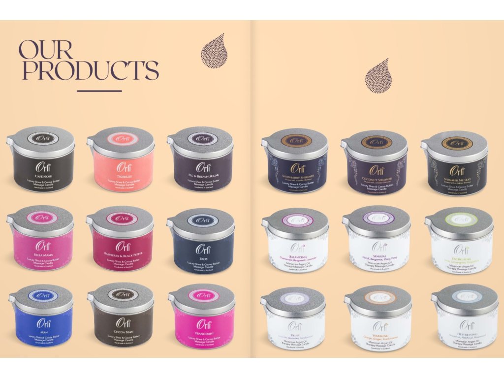Terapeutické masážní svíčky Orli dodají každému ošetření masážními svíčkami nádech luxusu. Tato řada je 100% čistá aromaterapie. Smíšený s vysoce kvalitními esenciálními oleji a naplněný jedním z nejdražších kosmetických olejů v tomto odvětví, arganovým olejem, jinak známým jako tekuté zlato v Maroku. O arganovém oleji se říká, že má regenerační účinky a účinky proti stárnutí a stal se jednou z nejnovějších zázračných ingrediencí v kosmetickém průmyslu. Má vysoký obsah vitamínu E a esenciálních mastných kyselin a předpokládá se, že pomáhá při všech druzích kožních onemocnění: akné, ekzémy, psoriáza, suchá pokožka a vrásky.