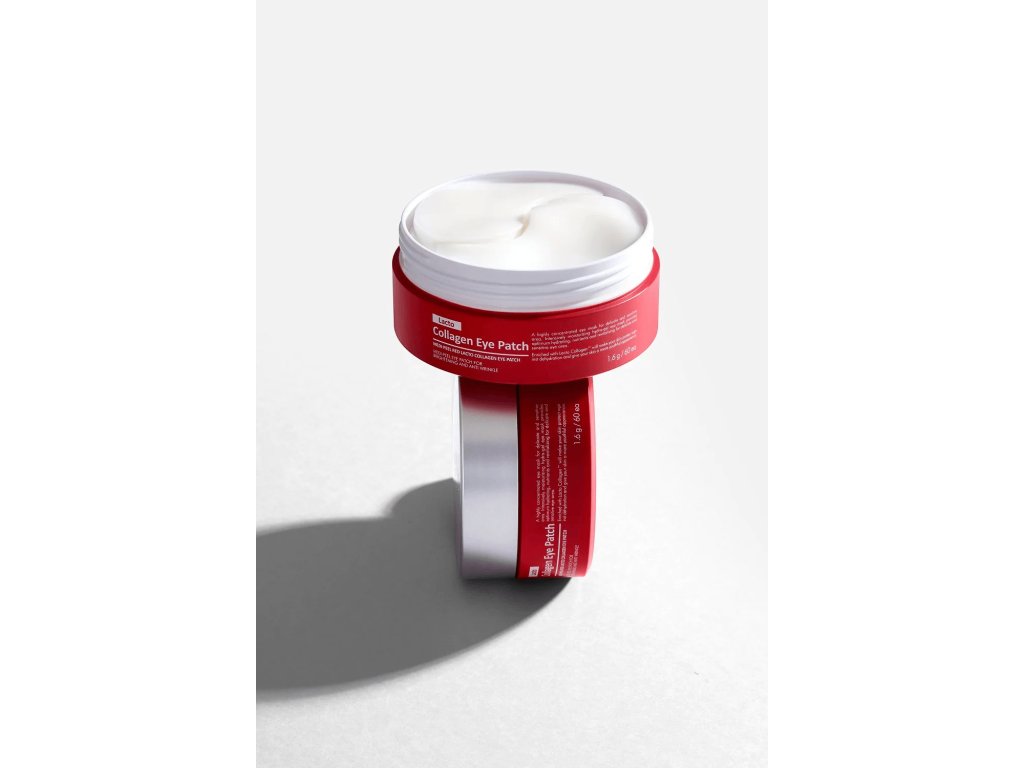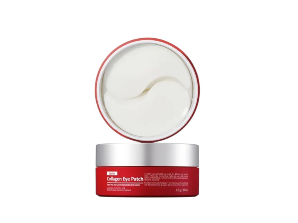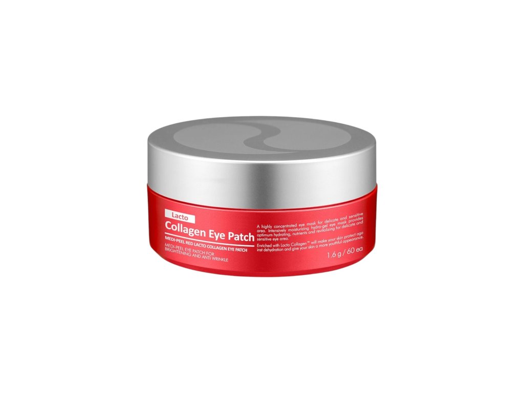 MEDI-PEEL Red Lacto Collagen Eye Patch - tyto náplati na oči proti stárnutí jsou poháněny 93 000 ppm kolagenového extraktu, který řeší jemné linky a vrásky kolem očí pro omlazené a mladistvě vypadající výsledky. Náplast na oči také dodává hydrataci se sedmi druhy kyseliny hyaluronové plus glycerin, snižuje viditelnost tmavých kruhů, a rozjasňuje oční okolí niacinamidem.