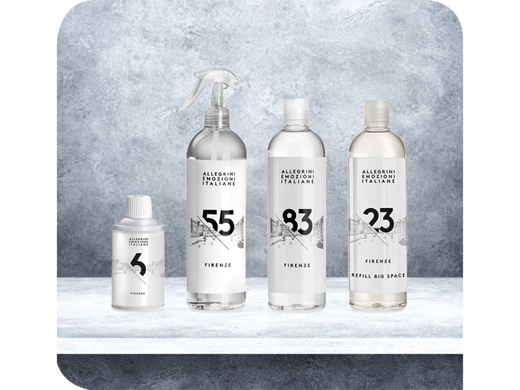 Řada Allegrini Emozioni Italiane s pomalým uvolňováním se skládá z vůní, které lze nalít do vhodné skleněné nádoby.