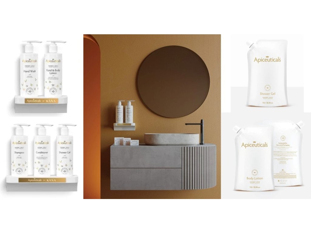 Luxusné kozmetická rada od APICEUTICALS zvyšuje imidž značky vášho hotela. Podporuje predaj produktov a zvyšuje príjmy. So značkovými etiketami a gravírovanými zlatými platničkami nie je váš hotel len pobytom. Je to vyhlásenie.