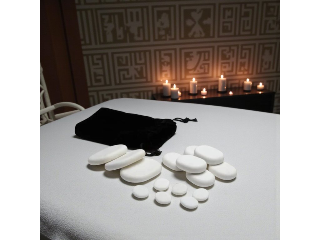 Studené kameny lze použít i pro jemnou masáž citlivých povrchů očí ke snížení otoků, tmavých kruhů a zlepšení tónu pleti. Bílé mramorové kameny přírodního původu jsou vyráběny ručně, což zaručuje jejich vysokou kvalitu a přírodní zbarvení.Používají se po masáži horkými kameny a stimulují pokožku.