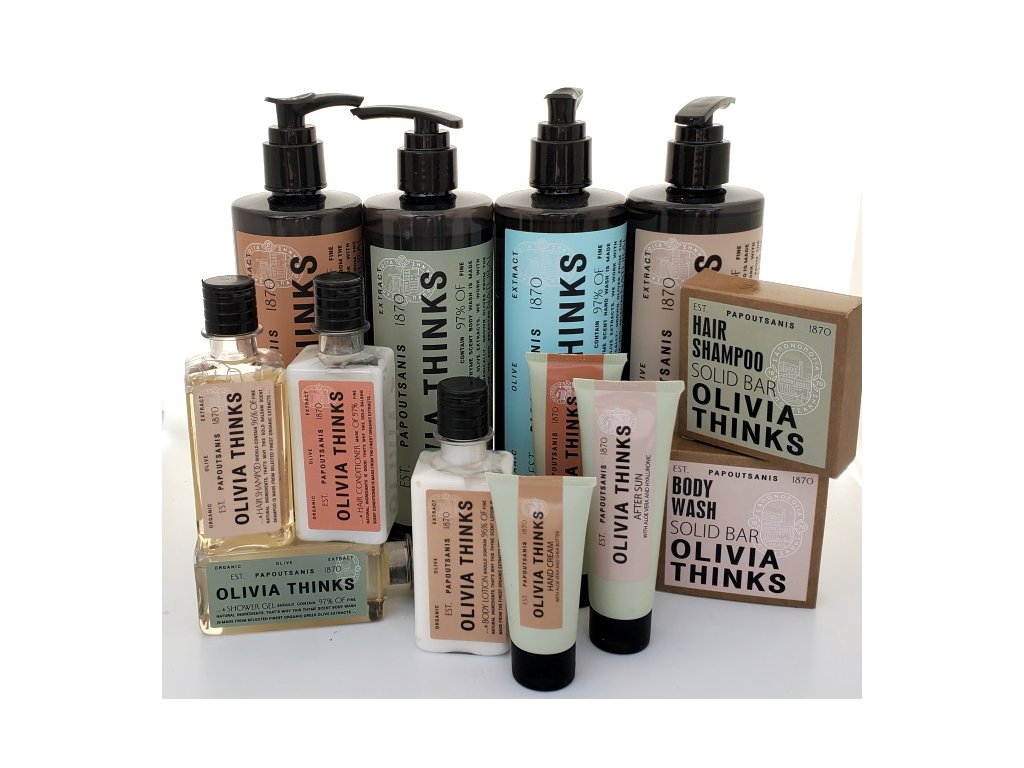 OLIVIA THINKS vyniká díky svému jemnému složení s výtažky z organického olivového oleje, Aloe Vera, olejem ze semínek Katrána etiopského a vitamínem E, které vyrovnávají potřeby pokožky, udržují ji hladkou a hydratovanou. Bez chemických přísad, s přírodními čistícími prostředky a revitalizujícími vůněmi, inspirovanými přírodou: růže, citron, pomeranč, tymián, levandule, ambra a cedrové dřevo, Olivia Thinks nabízí přirozený pocit pohody a omlazení. Všechny produkty Olivia Thinks jsou vyráběny bez parabenů, SLES, isothiazolinonů, BHT, formaldehydů, EDTA, křemíku, barviv a jsou dodávány se 100% recyklovaným a recyklovatelným obalem.