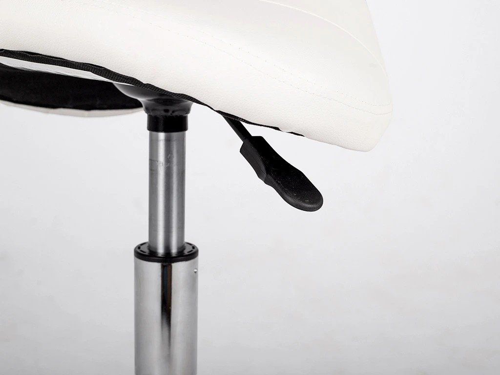 Ergonomická otočná židle s profilovaným sedátkem ve tvaru sedla, pohodlným nastavením výšky pomocí plynové pružiny a koleček. Sedlová židle podporuje optimální rozložení tělesné hmotnosti a usnadňuje přijetí přirozené polohy vsedě. Pětiramenný třpytivý chromový podstavec dodá eleganci každému interiéru. Určena pro masážní salony, fyzioterapii, kosmetické salony a kadeřnictví.