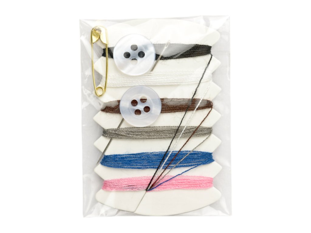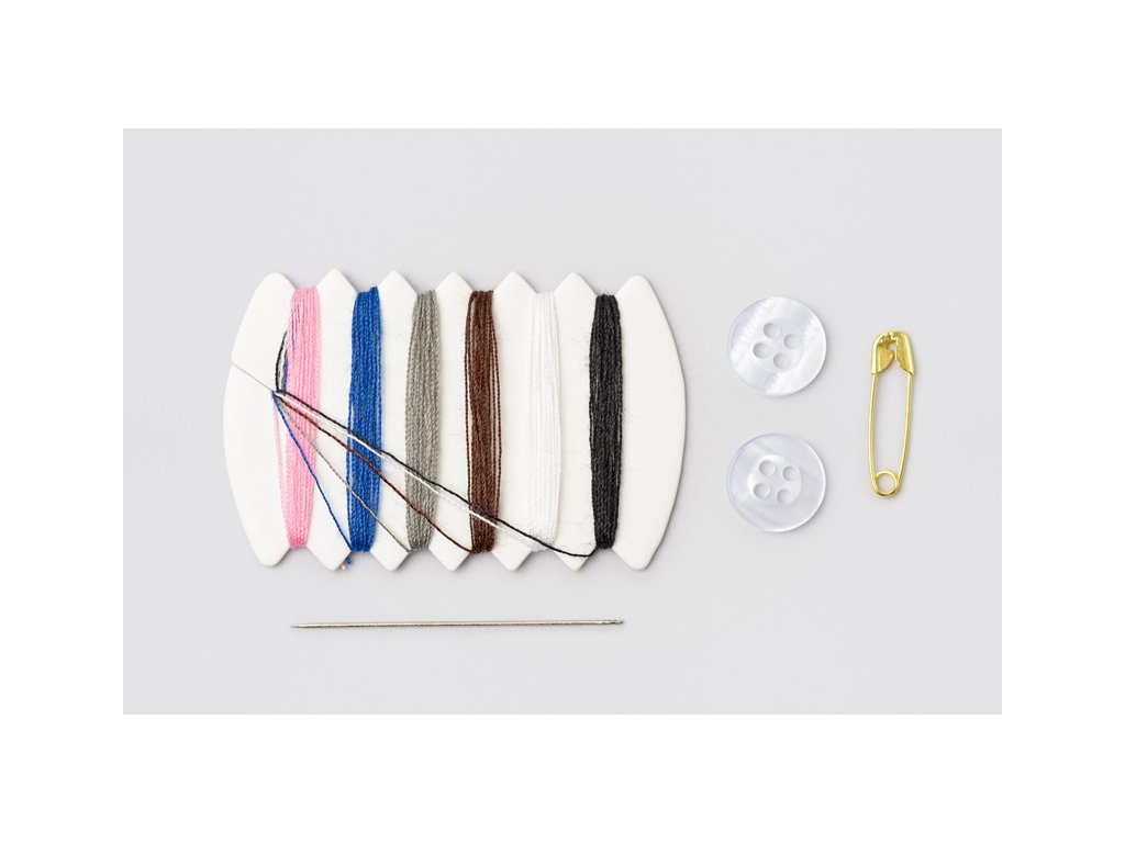 Bílá souprava na šití - 6 nití, 2 knoflíky, 1 zavírací špendlík, 1 jehla