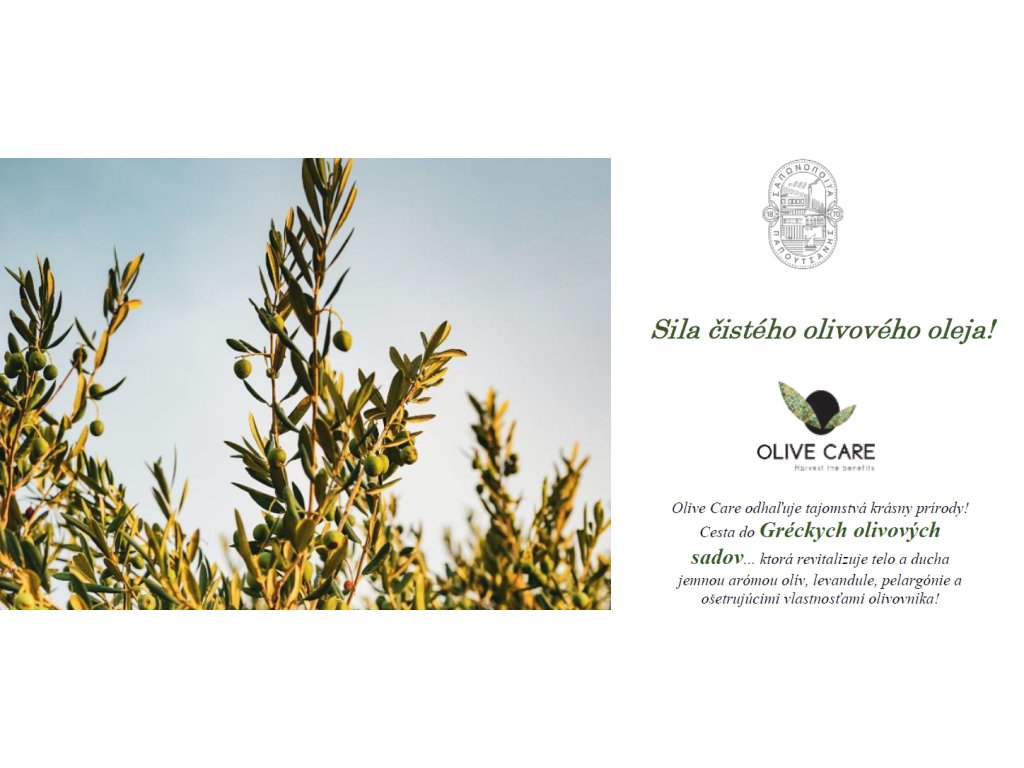 Tělové mléko Olive Care na bázi čistého organického olivového oleje a olivových extraktů, obohacené o skvalen, cenný antioxidant olivového oleje, obnovuje fyziologickou rovnováhu vlhkosti pokožky a zanechává ji jemnou a hydratovanou. Vhodné pro všechny typy vlasů.