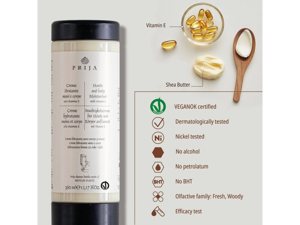 Hydratační TĚLOVÝ KRÉM PŘIJA s vitamínem E, 360 ml (dávkovač CySoap)